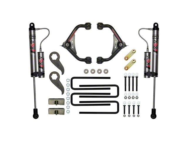 Turbulence-Inhibiting Design. Confidently tread any trail with your massive Sierra 3500 by installing this SkyJacker 3 to 3.50-Inch Suspension Lift Kit with ADX 2.0 Remote Reservoir Shocks to your suspension assembly. The high-performance shocks included in this suspension package are engineered to withstand the harshest conditions, providing optimal damping and enhanced stability. The remote reservoir design ensures consistent performance by preserving shock oil quality, preventing shock fade, and maintaining peak performance throughout your off-road journeys.
