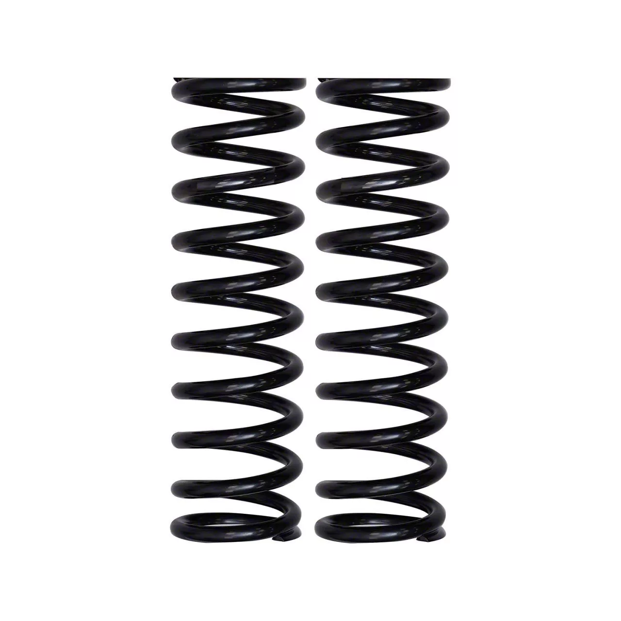 Skyjacker’s legendary Softride® coil spring technology engineered processes achieve exact height and precise coil spring rates. Known for phenomenal Softride® performance, Skyjacker's precision engineering gives you off-road responsiveness with smooth consistence handling characteristics. The process starts with high tensile chrome silicon wire, an advanced method of shot peening and a presetting process. Each coil spring is blasted (shot peen) with hard steel pellets at very high velocities. Shot peening compresses the surface of the steel thereby increasing the tensile strength of the spring.Compressing the spring completely down to where the coils touch (solid height) is preset. This takes any fatigue or stress off the spring and eliminates sagging. Every coil spring has endured a cycle test to assure the very best in quality. Coilover coil springs end configurations are closed. Each coil springs end configurations is ground flat to create a flat surface perpendicular to the spring axis for even surface. This flat surface delivers an even distribution of spring force to the working assembly and improves ease of assembly.All Made in the USA with a stylish, extremely durable protective powder-coated black finish that resists corrosion.