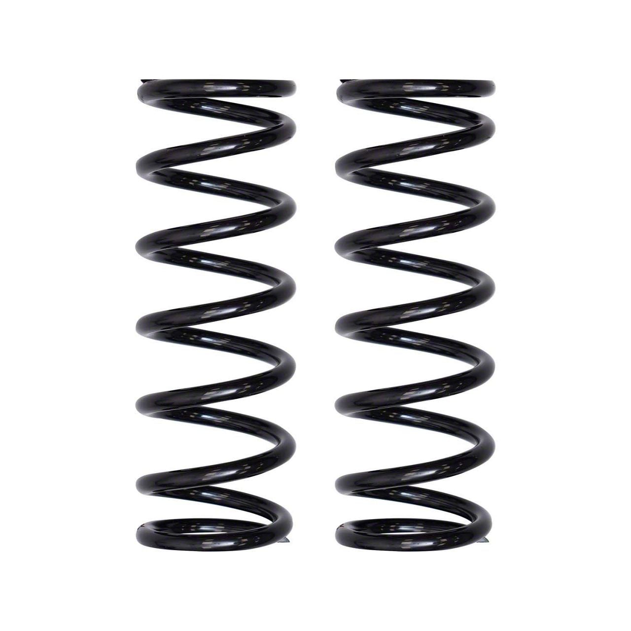 Skyjacker’s legendary Softride® coil spring technology engineered processes achieve exact height and precise coil spring rates. Known for phenomenal Softride® performance, Skyjacker's precision engineering gives you off-road responsiveness with smooth consistence handling characteristics. The process starts with high tensile chrome silicon wire, an advanced method of shot peening and a presetting process. Each coil spring is blasted (shot peen) with hard steel pellets at very high velocities. Shot peening compresses the surface of the steel thereby increasing the tensile strength of the spring.Compressing the spring completely down to where the coils touch (solid height) is preset. This takes any fatigue or stress off the spring and eliminates sagging. Every coil spring has endured a cycle test to assure the very best in quality. Coilover coil springs end configurations are closed. Each coil springs end configurations is ground flat to create a flat surface perpendicular to the spring axis for even surface. This flat surface delivers an even distribution of spring force to the working assembly and improves ease of assembly.All Made in the USA with a stylish, extremely durable protective powder-coated black finish that resists corrosion.