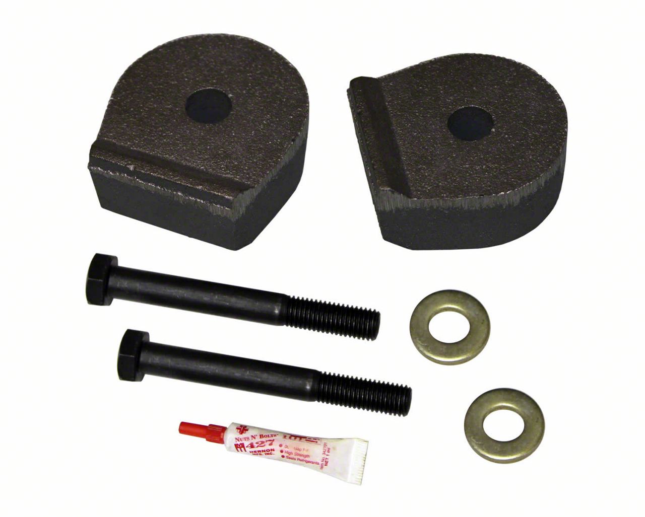 Industrial-Grade Aluminum Spacers. This leveling kit features front aluminum spacers. They have been designed to withstand incredible amounts of load and are finished with a specially formulated black coating for maximum protection against corrosion.