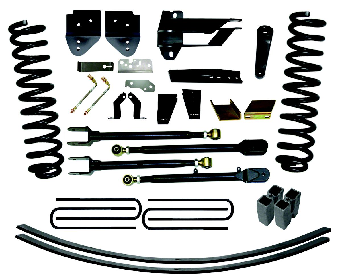 Kit Contains a Rear Block Kit. This suspension lift kit comes with a rear block kit. It includes 4 rear blocks and U-bolts, which help prevent your truck’s rear from sagging.