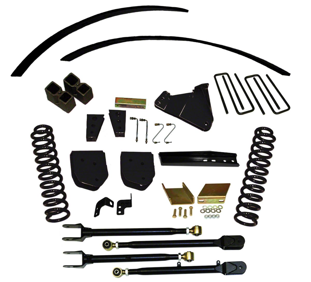 Strong Coils. The coils in this lift kit have been built from heavy-duty steel to provide superior ride support over the long haul. They’ve been treated with a matte black powder coat to ensure superior corrosion resistance and to provide an intimidating look to your vehicle.