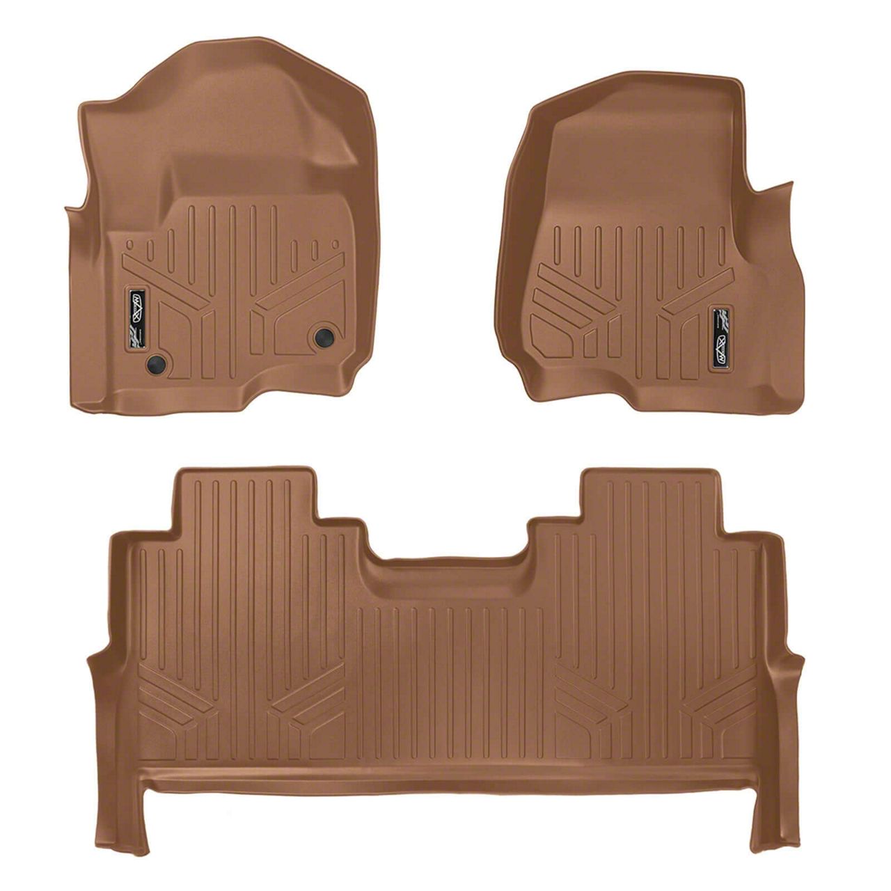 Construction and Appearance. Finished in tan brown, these liners complement the vehicle’s interior while providing practical coverage. Built using eco-friendly flexible and durable materials, they are designed to withstand dirt, spills, and heavy use. Their waterproof design ensures reliable year-round protection from mud, snow, and other harsh elements.
