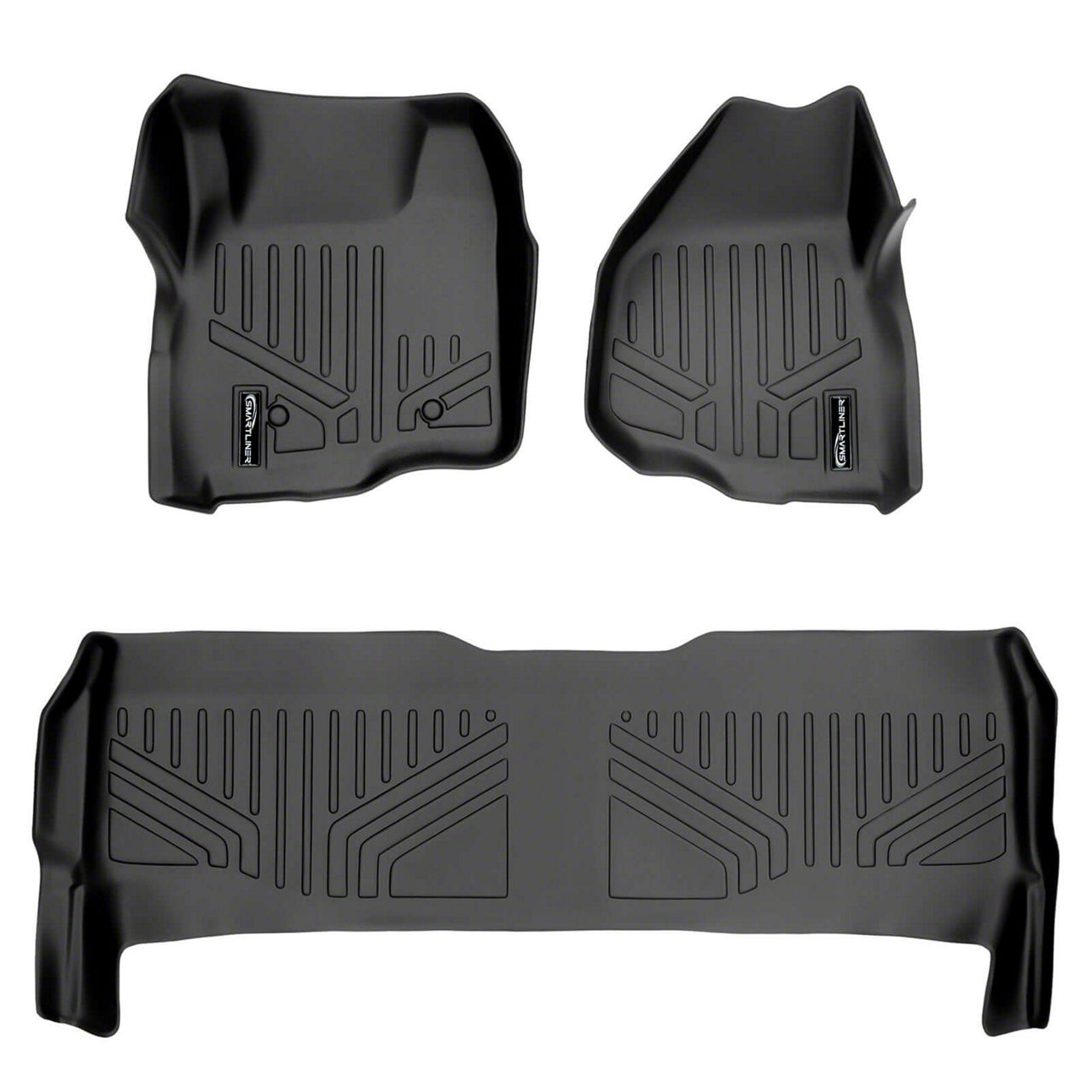 Application. These SmartLiner Smart Coverage Floor Liners fit 2011-2012 Ford F-250 Super Duty SuperCrew models with Depressed Left Corner on Driver Side, without Floor Shifter and Vinyl Flooring. Expect cleaner carpets year-round, better debris control after workdays and weekend trips, and a refined, uniform look that complements the interior.