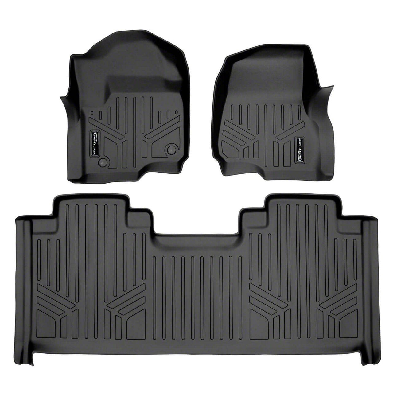 SmartLiner Smart Coverage Custom Fit Front and Rear Floor Liners; Black (17-26 F-350 Super Duty SuperCab w/ Front Bucket Seats & w/o Floor Shifter & Vinyl Flooring)Find parts that fit my vehicle