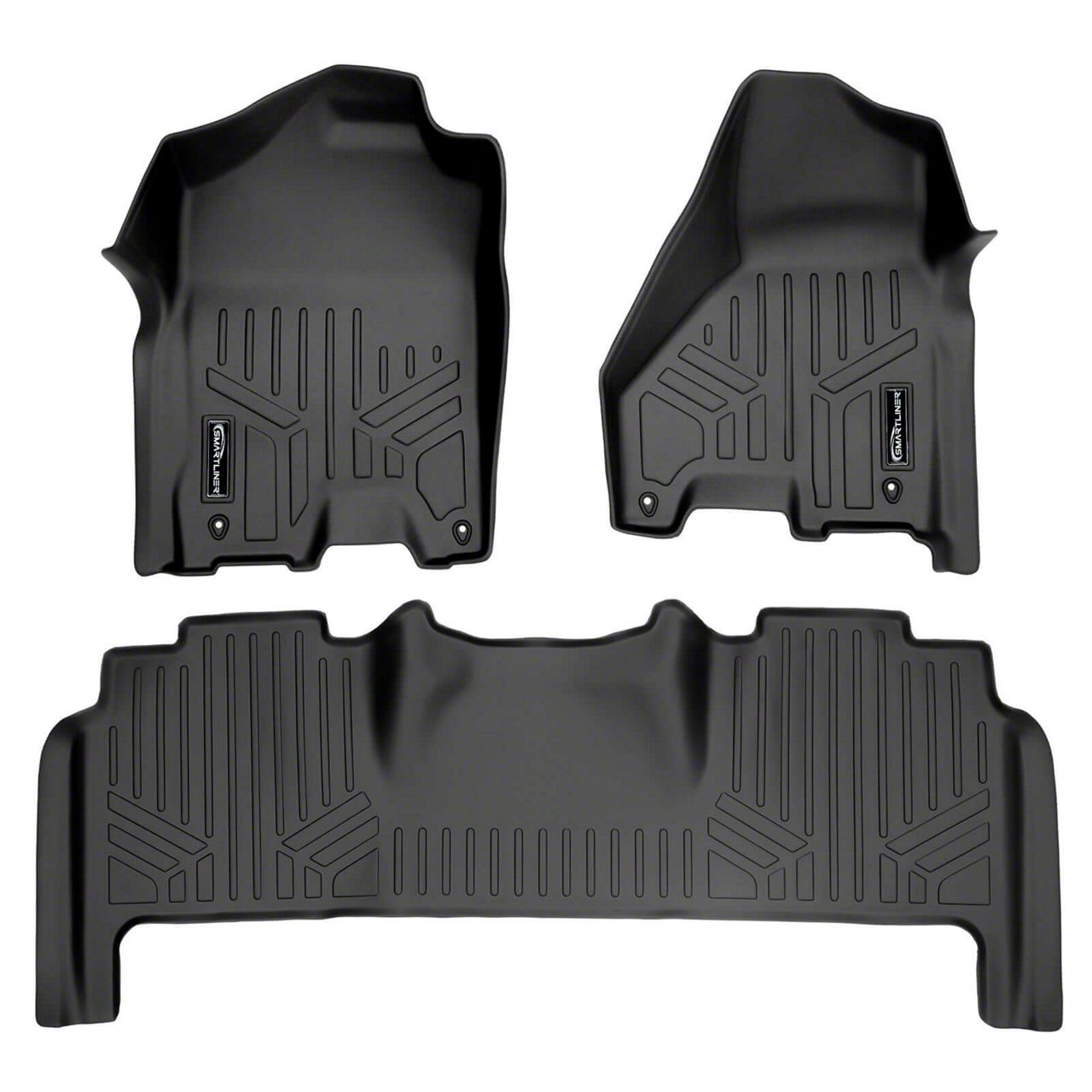SmartLiner Smart Coverage Custom Fit Front and Rear Floor Liners; Black (12-18 RAM 3500 Mega Cab w/ Bench Seat, Carpeted Flooring & Dual Floor Hooks & w/o Manual Floor 4x4 Shifter)Find parts that fit my vehicle