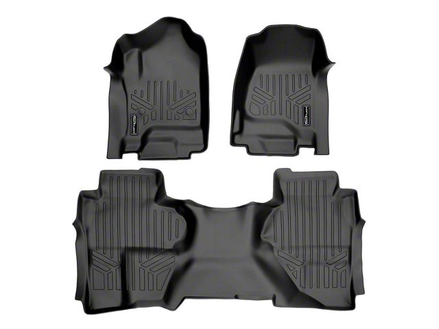 All-Weather Interior Protection. The SmartLiner Smart Coverage Custom Fit Front and Rear Floor Liners; Black are specifically engineered to shield the interior of your 2015–2019 Silverado 2500 HD Double Cab from dirt, mud, spills, and debris. Designed with raised edges and deep channels, these liners effectively trap liquids and messes, keeping your flooring clean and dry in all conditions. With the SmartLiner Smart Coverage Custom Fit Front and Rear Floor Liners; Black, you gain peace of mind knowing that your factory flooring remains well-protected from the elements year-round.