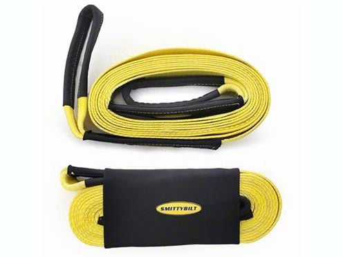 Application. The Smittybilt 3 in. x 30 ft. Recovery Tow Strap – 30,000 lb. can be fitted on all vehicles with most D-ring shackles or hook.