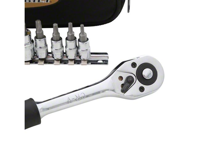 Ideal for Various Screwing and Unscrewing Applications. With torx bits that range in size from T15 to T55 and the inclusion of a T50 tamper-proof tip, the Smittybilt 9-Piece Torx Set is ideal for various screwing and unscrewing applications on your Ford F-150. These screw bits are stored in a steel rail and can be transported in the included carrying case for ultimate portability. This set includes an adapter, which fits into the included 3/8-inch ratchet from converting 3/8-inch female threads to ¼-inch male ones.