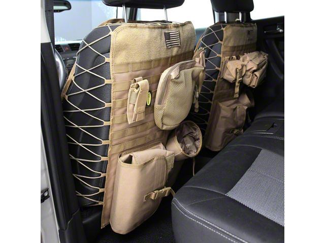 Add Functionality to Your Seats. When you choose these Smittybilt G.E.A.R. Front Seat Covers - Coyote Tan, you’re getting more than just a fashionable seat cover. These covers fit over your OEM covers and have seven storage pouches equipped with a Molle/Pals restraint system, so they won’t be compromised even under demanding conditions.