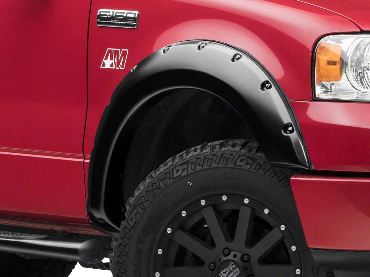 Rugged Styling. Tackle your doubts about factory style with Smittybilt M1 Fender Flare Kit for your F-150. These rugged pocket style flares are the perfect addition to your off road rig. They're designed to provide a perfect fit and extra protection from flying mud and debris. Each Flare is equipped with bright exposed hardware to give your rig intense style. They'll easily complement your factory finishes and can even be painted for a more custom appearance.