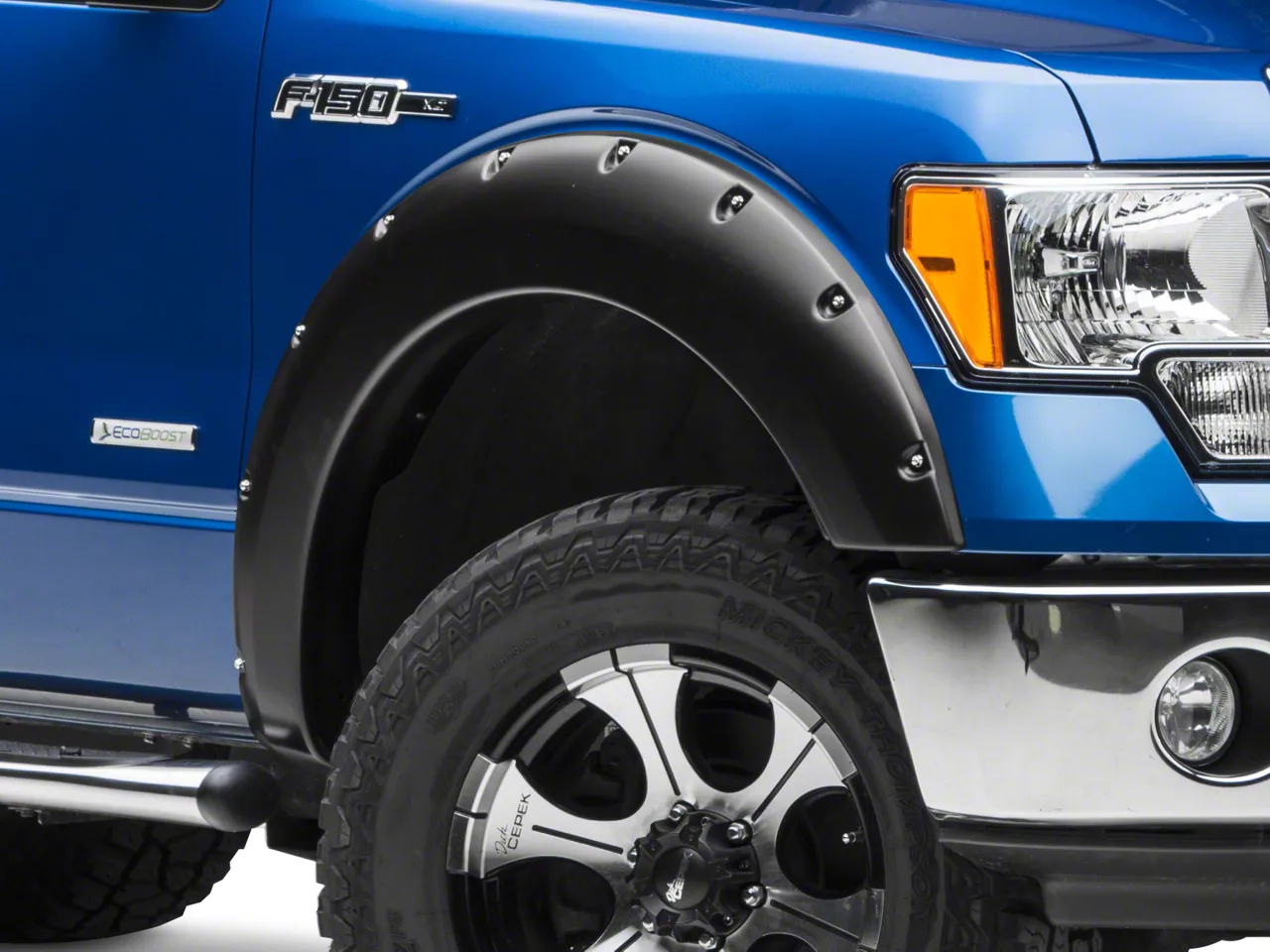 Rugged Styling. Upgrade your Ford to rugged protection without skimping on style by investing in the Smittybilt M1 Fender Flare Kit for your F-150. These pocket style Fender Flares are the perfect addition for those traveling on or off road. They're designed to give you extra protection from flying mud and debris. Each Flare is equipped with bright exposed hardware to give your rig intense style. They'll easily complement your factory finishes and can even be painted for a more custom appearance.