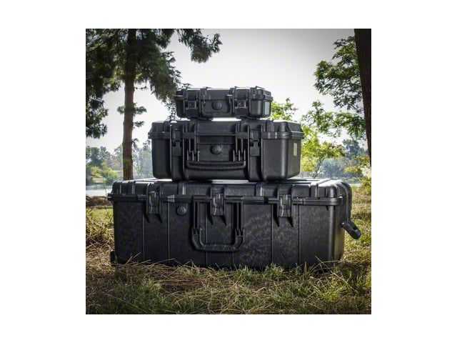 Construction and Appearance. Built with a water and dust-resistant design, this protective case ensures your items stay safe and dry, even in harsh conditions. Heavy-duty latches and hinges enhance the case's durability, while the stackable design allows for easy storage and transport when you need to carry multiple cases.