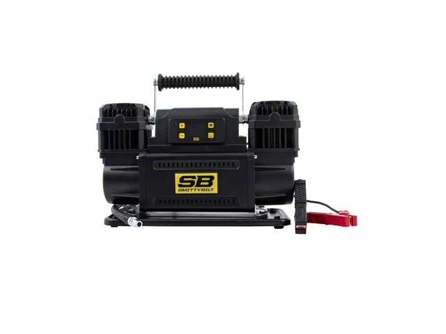 Powerful Portable Air Compressor. The Smittybilt Air Compressor is a versatile and portable tool designed for quickly airing up or down your vehicle's tires and other accessories. With an impressive output of 10.60 CFM, this compressor efficiently handles demanding tasks, making it an essential tool for off-road adventures or daily use.