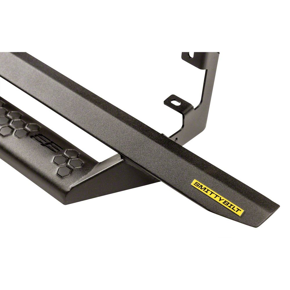 Smittybilt's Angular Drop Steps match the newest generation of vehicle styling. This design offers a clean look while protecting the side of the vehicle. Its wide step and unique hexagon design enhances the look of your vehicle while giving you a large safe platform to step in and out of your vehicle. Our light black textured finish provides durability and protection against all elements and provides . Quick and easy install. Smittybilt Angular Drop Steps Autoare backed by our industry leading lifetime structural and 5 year finish warranty.