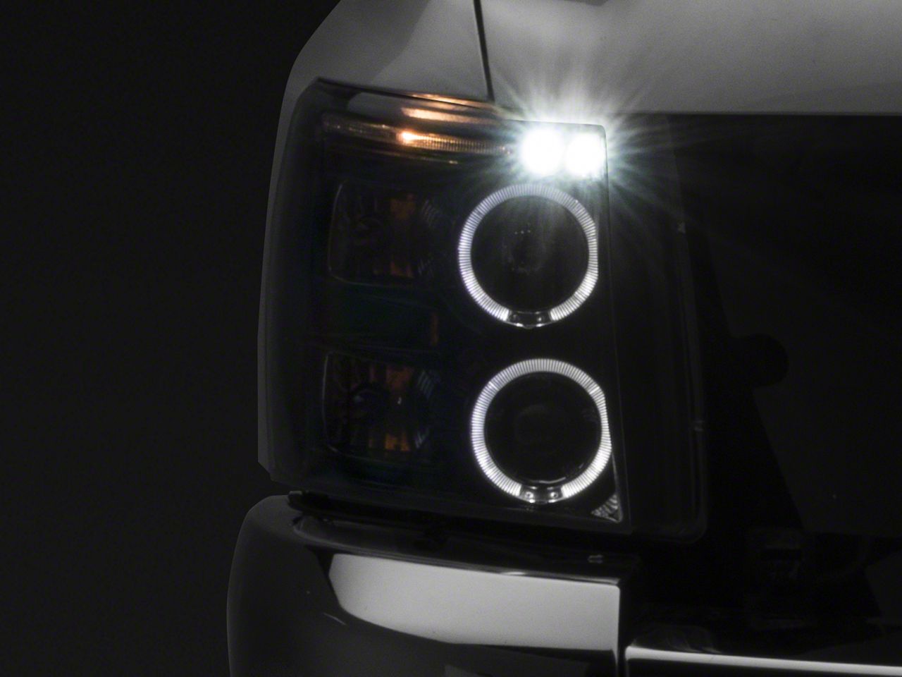 Euro-Inspired Style. This set of Smoked Projector Headlights with LED Halos will not only make your Silverado 1500 look better, it will also enhance your nighttime visibility. The LED halos in these headlights will give your truck a distinctive Euro-style look, since this “angel eyes” style originated from European luxury cars. In addition, the projector-style lenses ensure that you get a concentrated beam that’s more comfortable for the eyes.