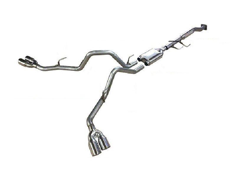 Application. This Solo Performance Mach X Dual Exhaust System with Resonator and Polished Tips; Side Exit is made to fit 2011-2014 5.0L Ford F-150 models.