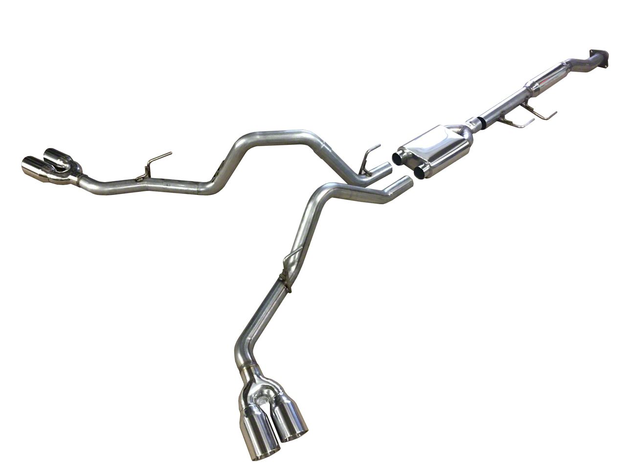 By Solo Performance. This exhaust system also features a staggered and beveled 3.5 inch dual T304 exhaust tip on opposite sides to deliver the sound you crave, roaring upon acceleration and quieting down at cruising speeds.