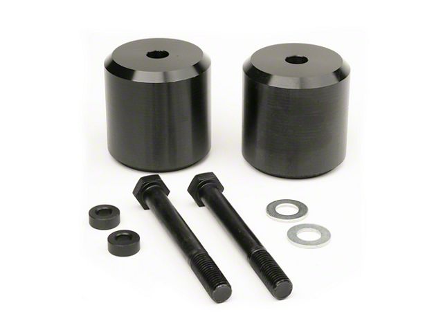 High-Strength Spacers. To ensure that your truck will have a solid mount and even load distribution, this Front Leveling Kit comes with heavy-duty lift spacers. The 2.50-inch lift is provided by the high-strength CNC-machined billet aluminum alloy spacers. Each spacer is also reinforced with a black powder-coated finish to resist corrosion and chipping while adding a bolder look to your lift system.