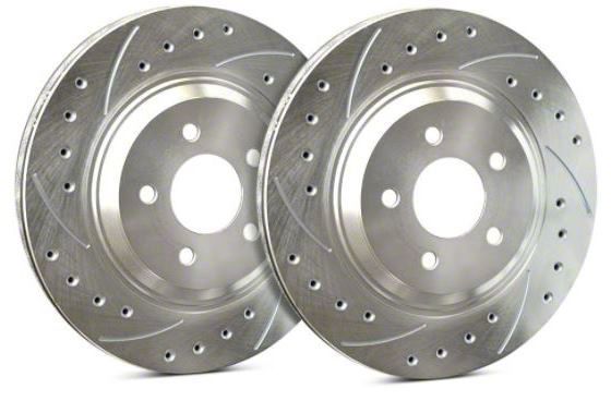 Improves Braking Performance. Reduce the amount of time between applying your brakes and coming to a complete stop with SP Performance Cross-Drilled & Slotted Rotors w/ Silver Zinc Plating - Rear Pair. The cross-drilled holes and slots on the rotors move air and brake dust from the brake disc surface to lower the temperature, thus virtually eliminating heat checking and warping. Plus, the holes and slots reduce the risk of hydroplaning when encountering puddles by preventing the water from getting trapped between the pads and rotors.