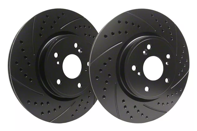 SP Performance Double Drilled and Slotted 6-Lug Rotors with Black ZRC Coating; Rear Pair (12-14 F-150; 15-20 F-150 w/ Manual Parking Brake)Find parts that fit my vehicle