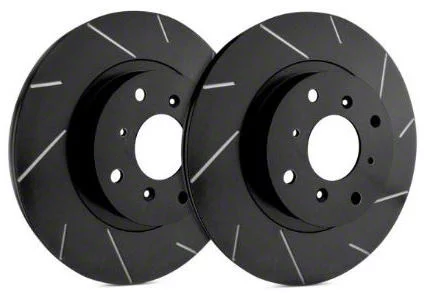 Construction and Appearance. Each rotor features a durable matte black finish with corrosion-resistant zinc plating for extended life and protection. The slotted 6-lug design improves brake pad contact and helps evacuate gases and debris, making these rotors ideal for performance or heavy-duty applications.