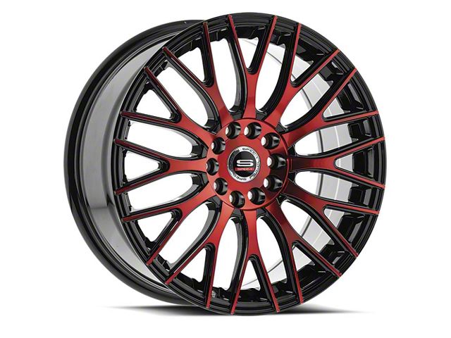 Spec-1 SP-55 Gloss Black and Red Machined 5-Lug Wheel; 20x8.5; 38mm Offset is a visually striking choice, offering a combination of rugged durability and modern styling. Its design complements off-road and sporty vehicles alike, enhancing the overall aesthetic appeal.