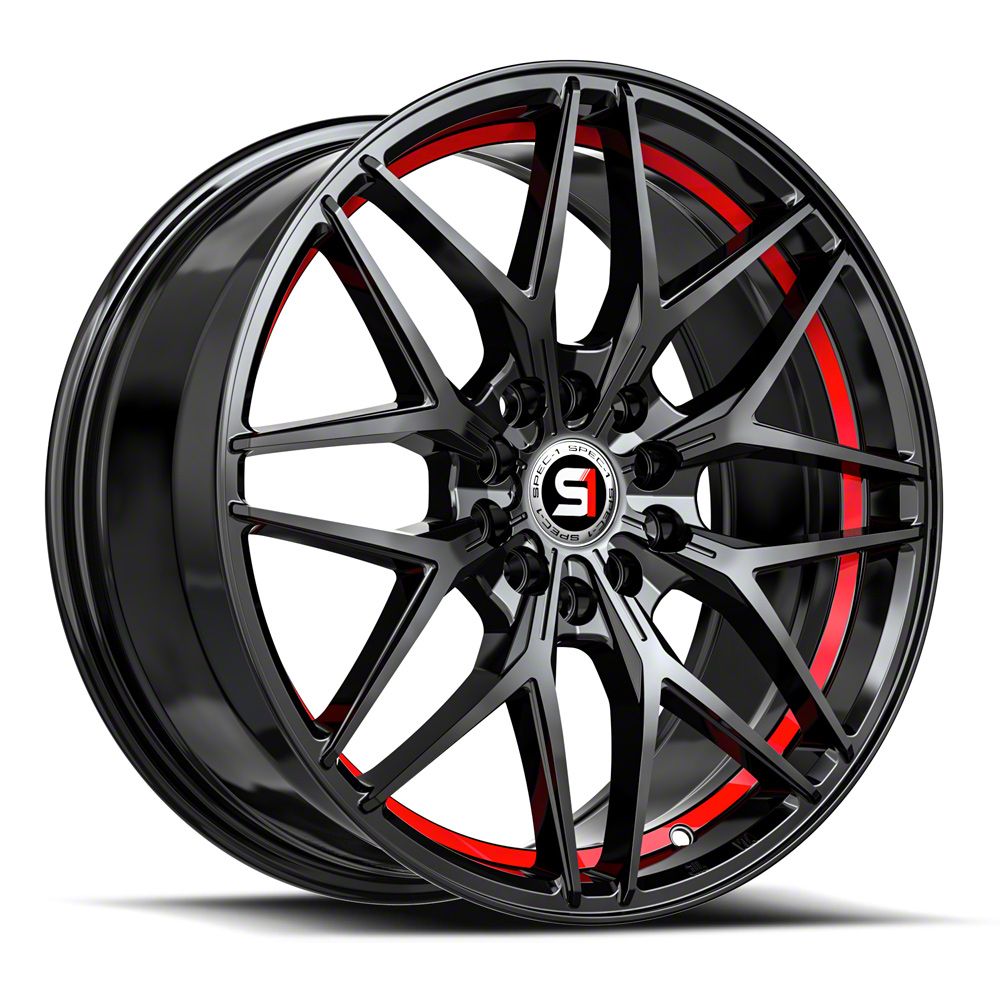 This 18x8 Spec-1 SP-60 Gloss Black and Red Undercut 5-Lug Wheel; 18x8; 38mm Offset is completed in a high-quality gloss black finish with red accents to make your wheel the envy of everyone. For added looks and durability, the wheels has a durable clear coat that withstand the rigors of daily driving.
