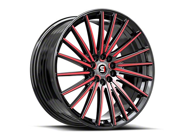 Spec-1 SP-68 Gloss Black and Red Machined 5-Lug Wheel; 18x8; 38mm Offset is a visually striking choice, offering a combination of rugged durability and modern styling. Its design complements off-road and sporty vehicles alike, enhancing the overall aesthetic appeal.