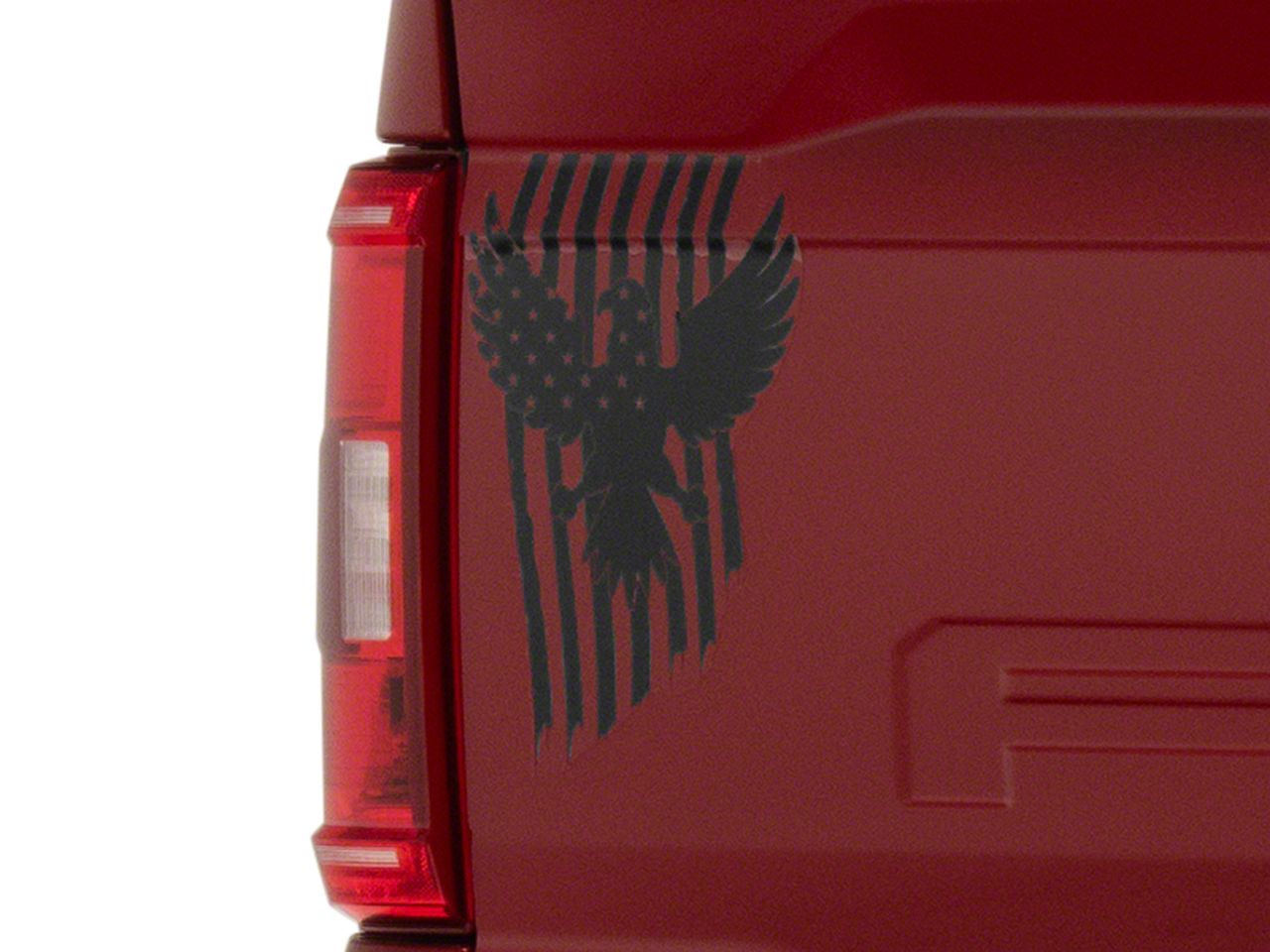Patriotic Styling. Add proud patriotic styling to your ride with this SEC10 Eagle, Stars and Stripes Decal. This decal features a spread eagle design, with stars across its right wing, over top of 13 vertical distressed stripes. This Decal has a universal design, so it can be applied to any smooth flat surface and looks especially good in your rear/side windows or on your tailgate.