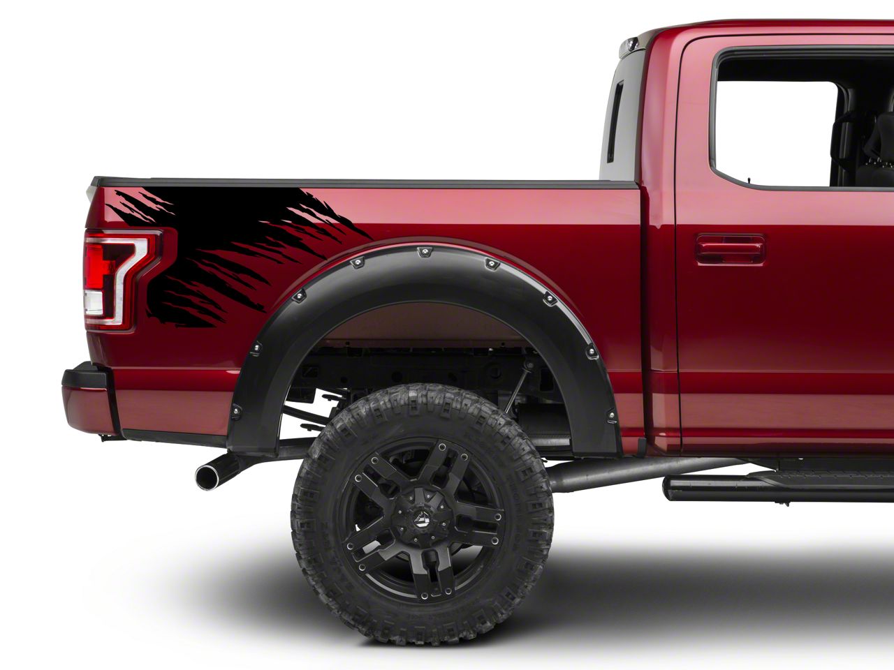 Aggressive Styling. This Black Shredded Accent Decal from SpeedForm is a great way to add an aggressive appearance to your 2015-2020 Ford F-150. As an added bonus this decal is an excellent way to cover up any existing scuffs and scratches you may have earned on the road or out on the trail.