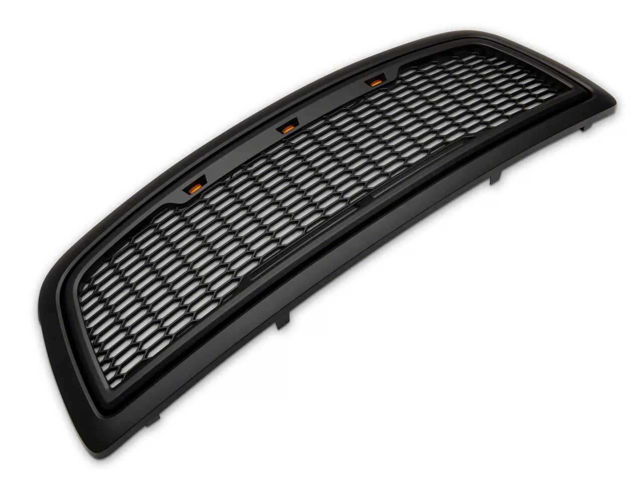 LED Accent Lighting. This Baja Style Grille also includes three high mount amber LED accent lights. These LED accent lights come with a wiring harness that simply splices into your RAM's existing factory headlight harness. The LEDs will then automatically activate in conjunction with your running lights. The eye-catching LEDs not only look great, but will also make your RAM more visible to other drivers at night and in poor weather conditions.