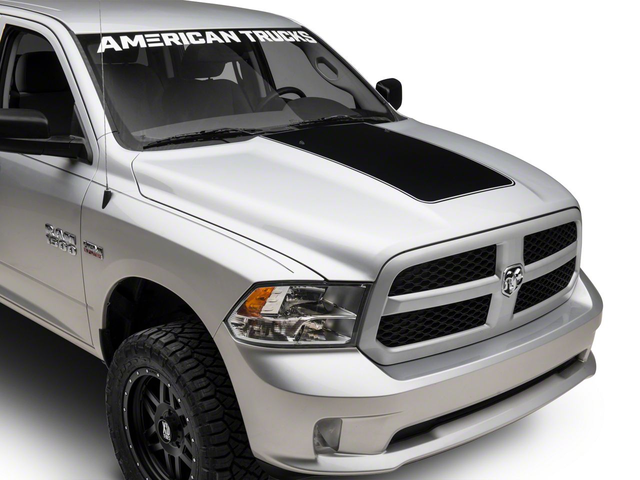 Muscular Styling. Add bold, muscular styling to your 2009-2018 Dodge RAM with an SpeedForm Matte Black Hood Decal. This great looking Decal is an easy way to enhance the look of the power bulge hood found on the Dodge RAM 1500. This Matte Black Decal features a wide center stripe, that is accented by a thinner pinstripe for a classic, muscular appearance.