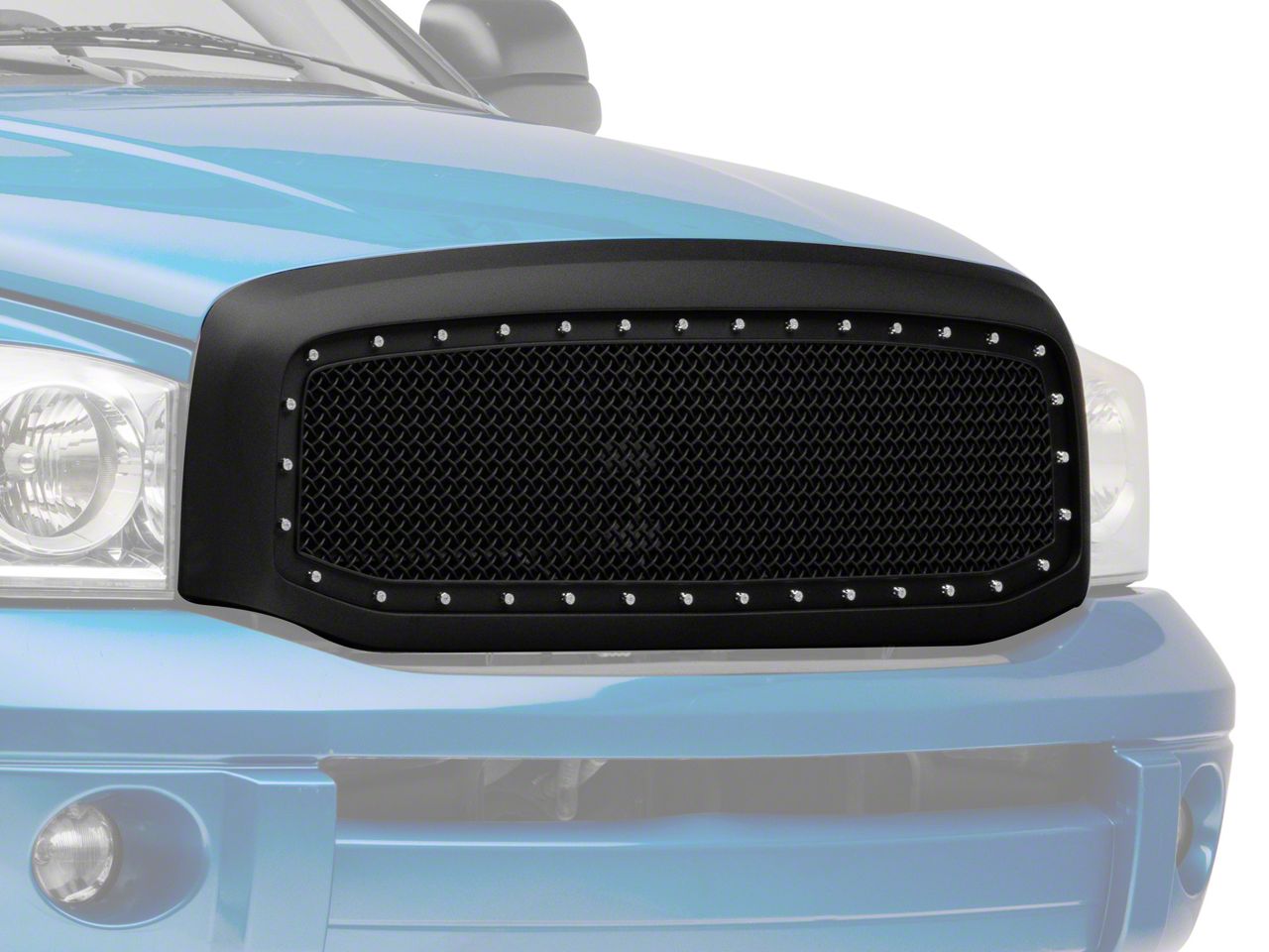 Application. This RedRock 4x4 Mesh Upper Replacement Grille with Rivets; Matte Black is designed to fit 2006-2008 RAM 1500 models. This is a replacement grille not an overlay.