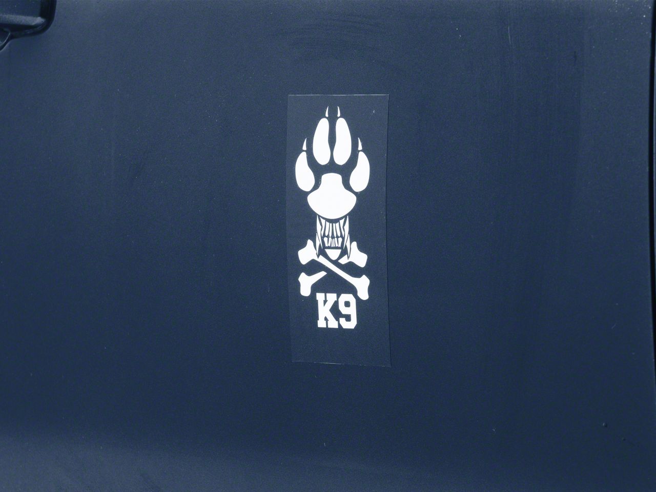 K9 Decal. Show your support for your furry friends in blue with this SEC10 K9 Novelty Decal. This decal features a very unique paw print, fang and cross bone design that will look great in your rear or side window.