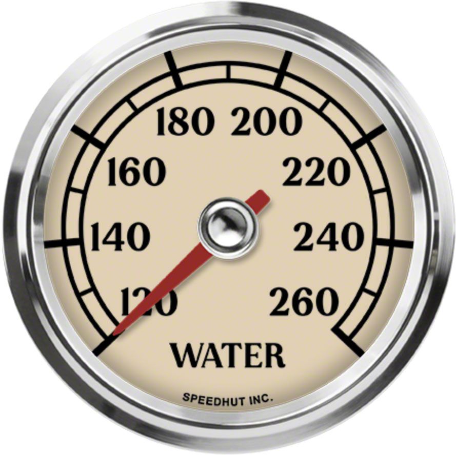 Speedhut Antique Series 2-5/8-Inch Water Temperature Gauge; 120-260 Degrees Fahrenheit (Universal; Some Adaptation May Be Required)