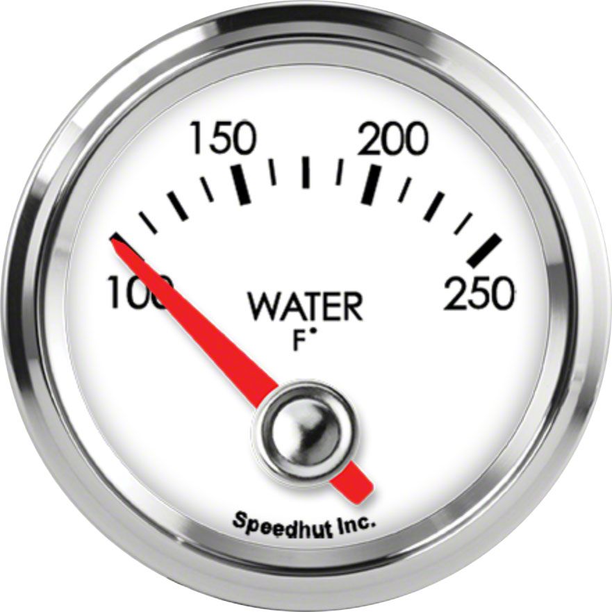 Speedhut Legacy Series 2-1/6-Inch Water Temperature Gauge; 90-Degree Sweep; 120-250 Degrees Fahrenheit (Universal; Some Adaptation May Be Required)