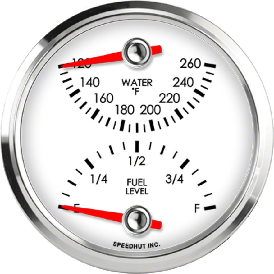 Speedhut Legacy Series 3-3/8-Inch Dual Gauge; Fuel Level; Water Temperature 120-260 Degrees Fahrenheit (Universal; Some Adaptation May Be Required)