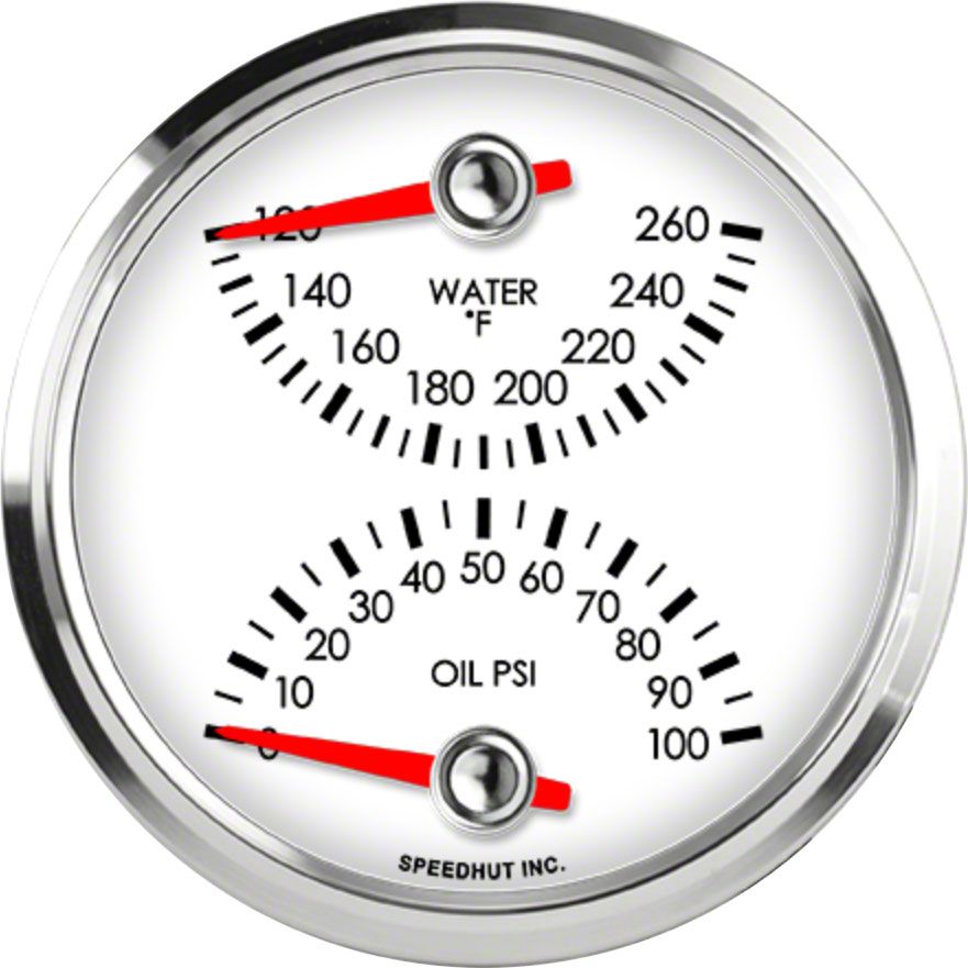 Speedhut Legacy Series 3-3/8-Inch Dual Gauge ; Water Temperature 120-260 Degrees Fahrenheit; Oil Pressure 0-100 PSI (Universal; Some Adaptation May Be Required)