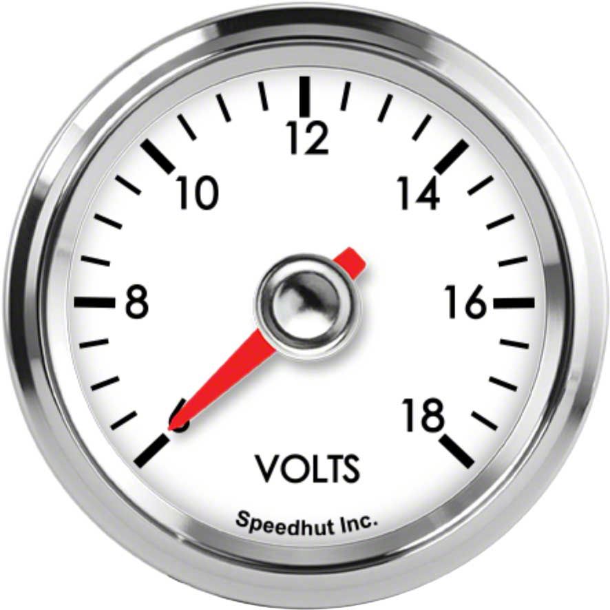 Speedhut Legacy Series 2-1/16-Inch Volt Gauge; Full Sweep; 6-18 Volts (Universal; Some Adaptation May Be Required)