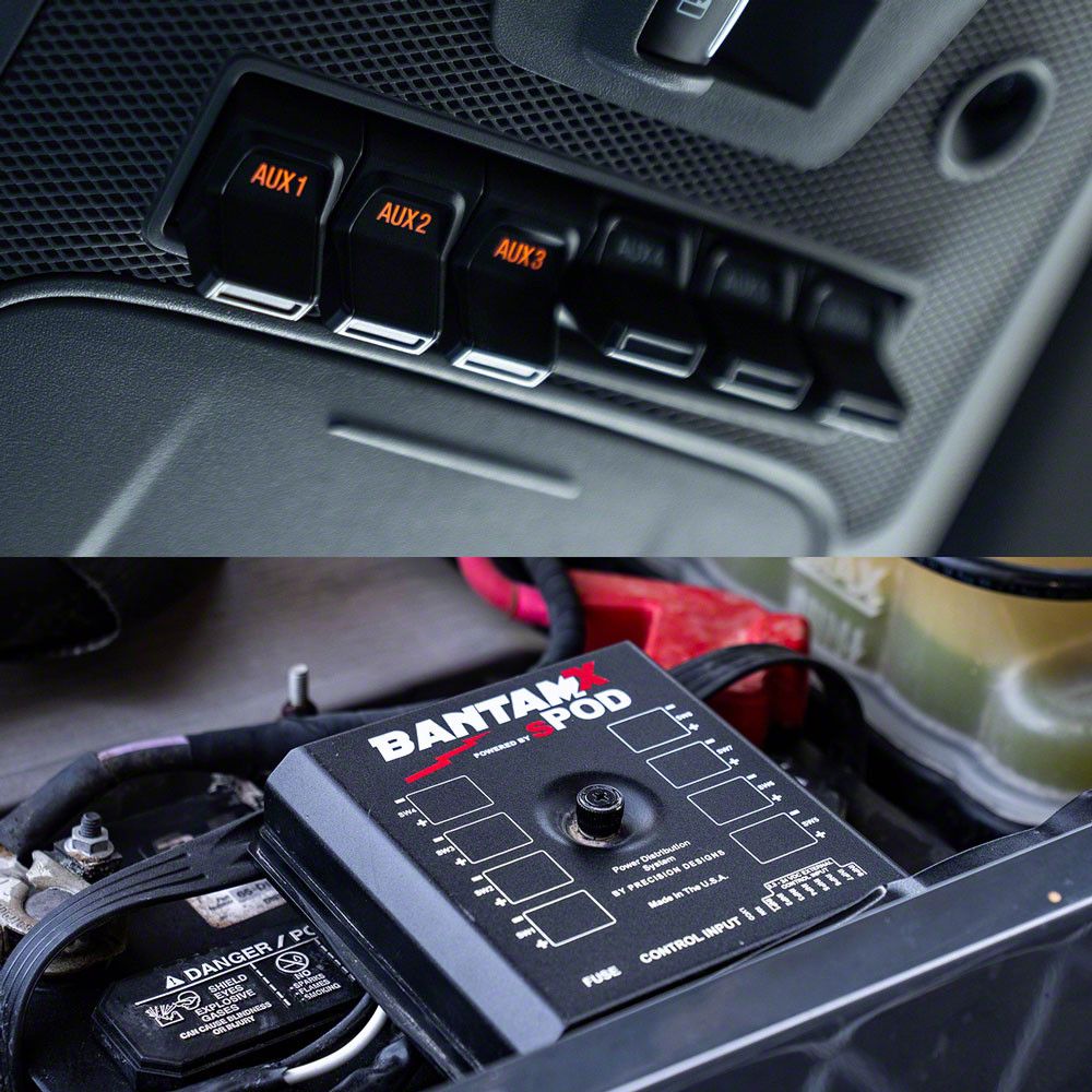 Advanced Upfitter Power Management System. The sPOD BantamX Upfitter Kit is designed to simplify the management of your vehicle's electrical accessories. With its high-quality construction and innovative design, it provides a seamless solution for controlling lights, winches, and other accessories without the need for complex wiring.