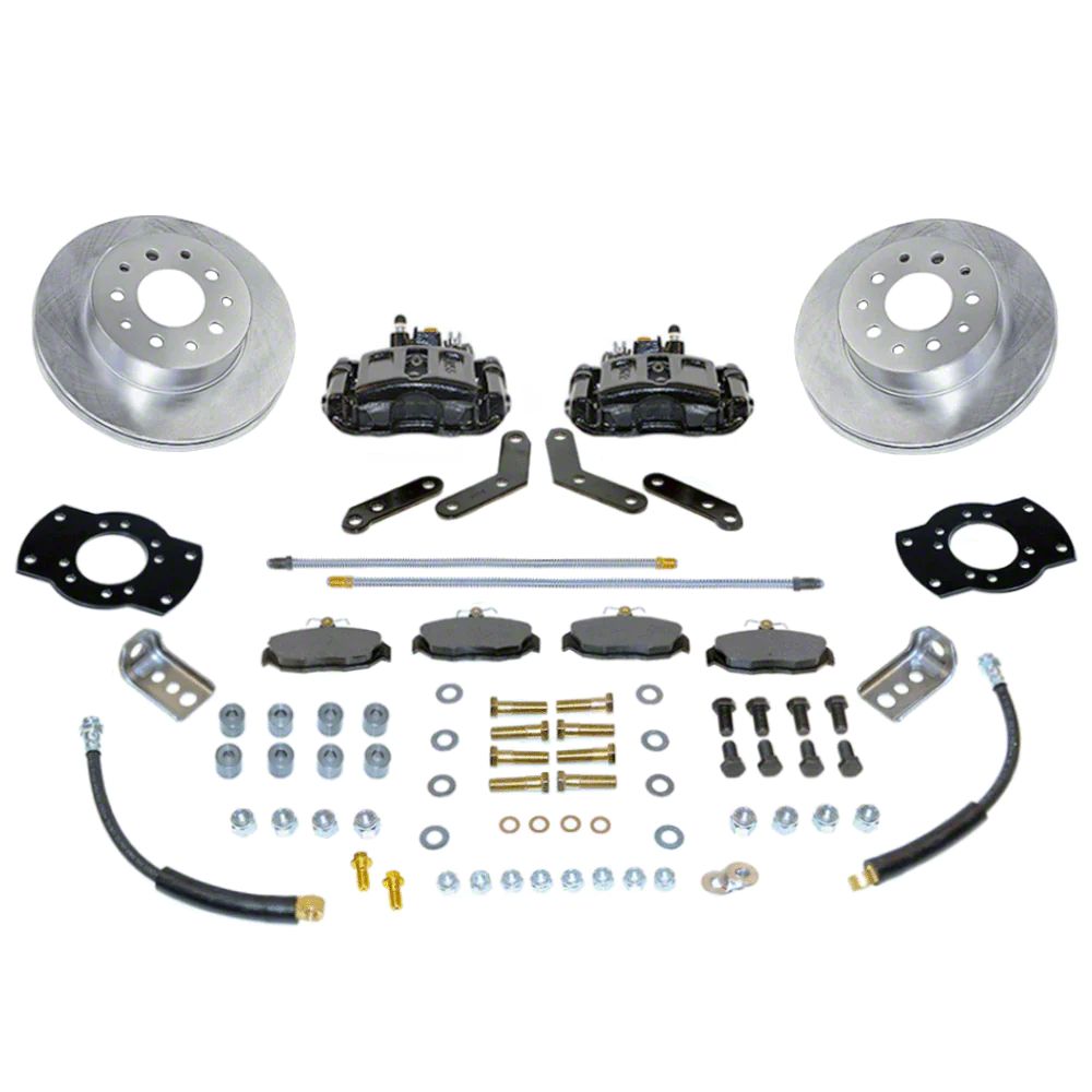 Rear Disc Brake Upgrade. The SSBC-USA Rear Disc Brake Conversion Kit with Built-In Parking Brake Assembly and Vented Rotors; Black Calipers provides a significant performance improvement by converting drum brakes to modern disc brakes. It enhances stopping power and reliability, making it an essential upgrade for vehicles that require better braking capability with a factory-like fit. This kit integrates all necessary components for a direct bolt-on installation.