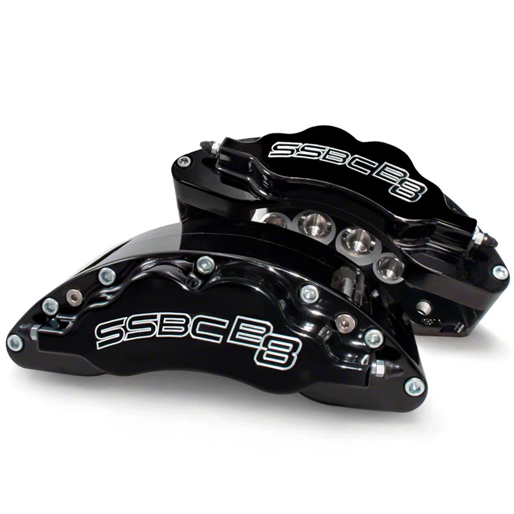 The 8-piston aluminum calipers are a direct replacement for factory 2-piston rear calipers. The SSBC-USA kit includes high-performance severe-duty brake pads, all necessary hardware and full instructions. Standard colors are clear anodized, red, and black, with optional custom powder coat colors available.