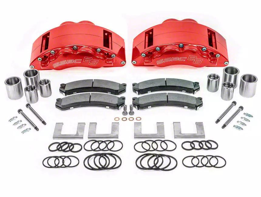 Installation. The SSBC-USA Barbarian Front 8-Piston Direct Fit Caliper and Semi-Metallic Brake Pad Upgrade Kit with Dimple Drilled Slotted Rotors is easy and requires no drilling.