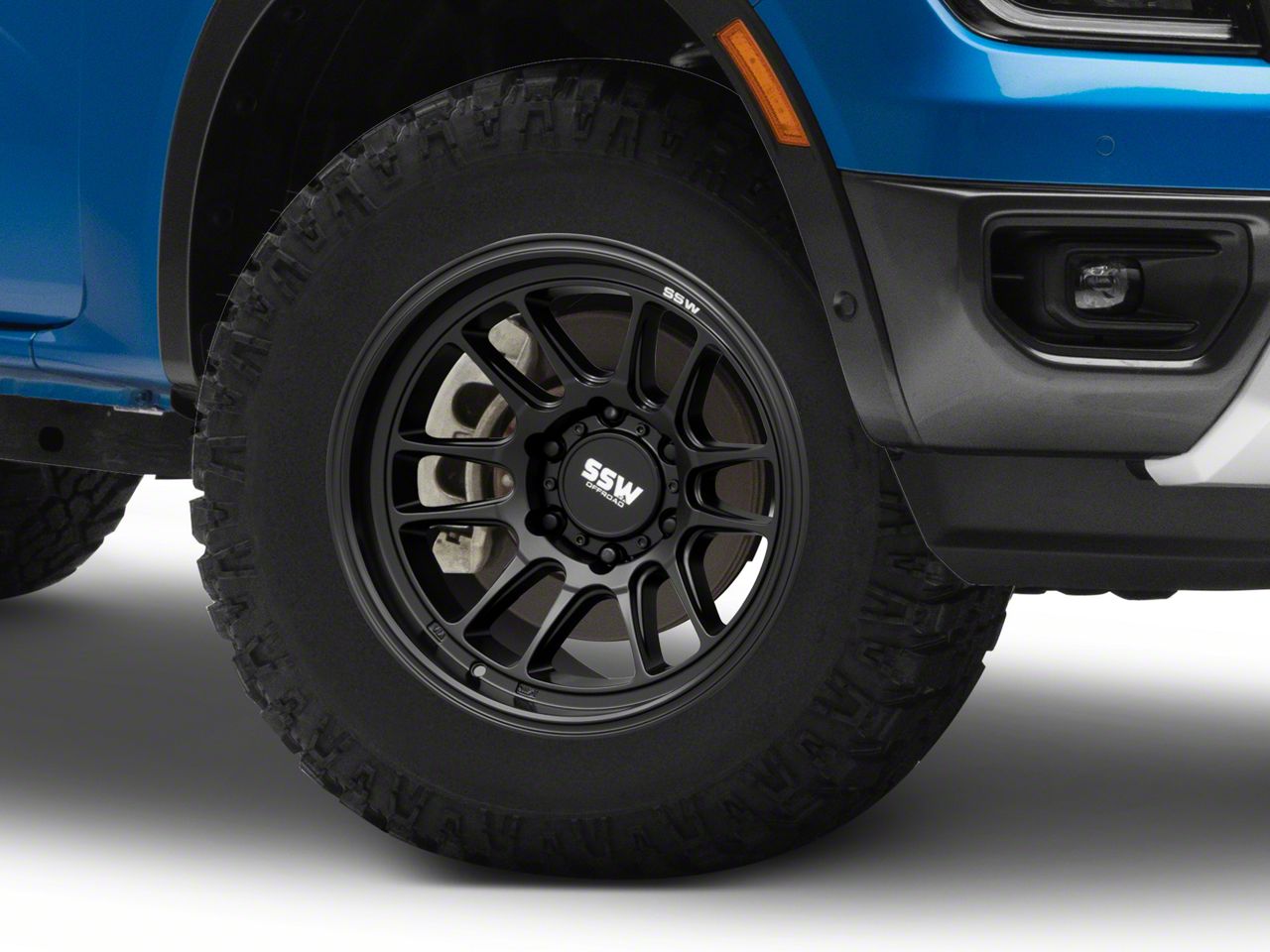 Application. This SSW Off-Road Wheels wheel, Raptor Matte Black 6-Lug Wheel; 17x9; -12mm Offset, features a backspace of 4.528 Inch, 115mm and a bolt pattern of 6 x 139.7mm . These specifications help ensure proper wheel alignment and enhance driving stability. It is designed to fit the 2024-2026 Ranger models. Sold individually.