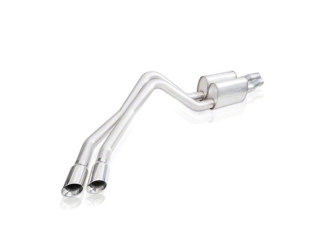 This system features dual mufflers and dual 4" polished slash-cut double wall tips. Options to connect to either the stock manifolds or Stainless Works headers. Exits out at factory location behind rear tire.