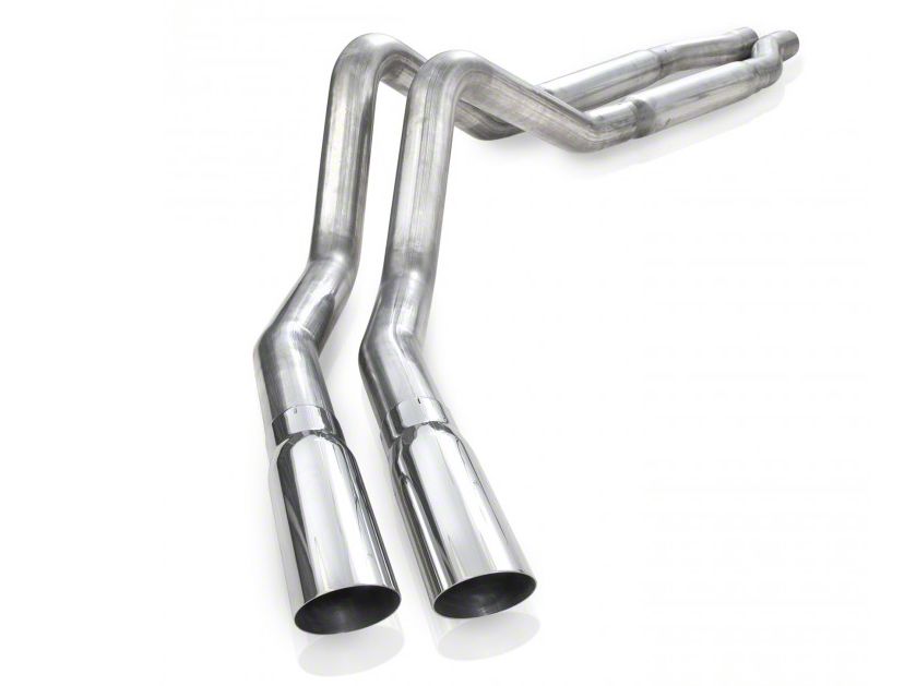 Vigorous Performance. The Dual Side Exit of the Stainless Works True Dual Smooth Tube Cat-Back Exhaust provides it the necessary punch to withstand the huge performance upgrade. The Performance Connect fitted for a 11-14 5.0L gives it the boost you expect. The performance is built to last with stainless steel Long Tube Headers.
