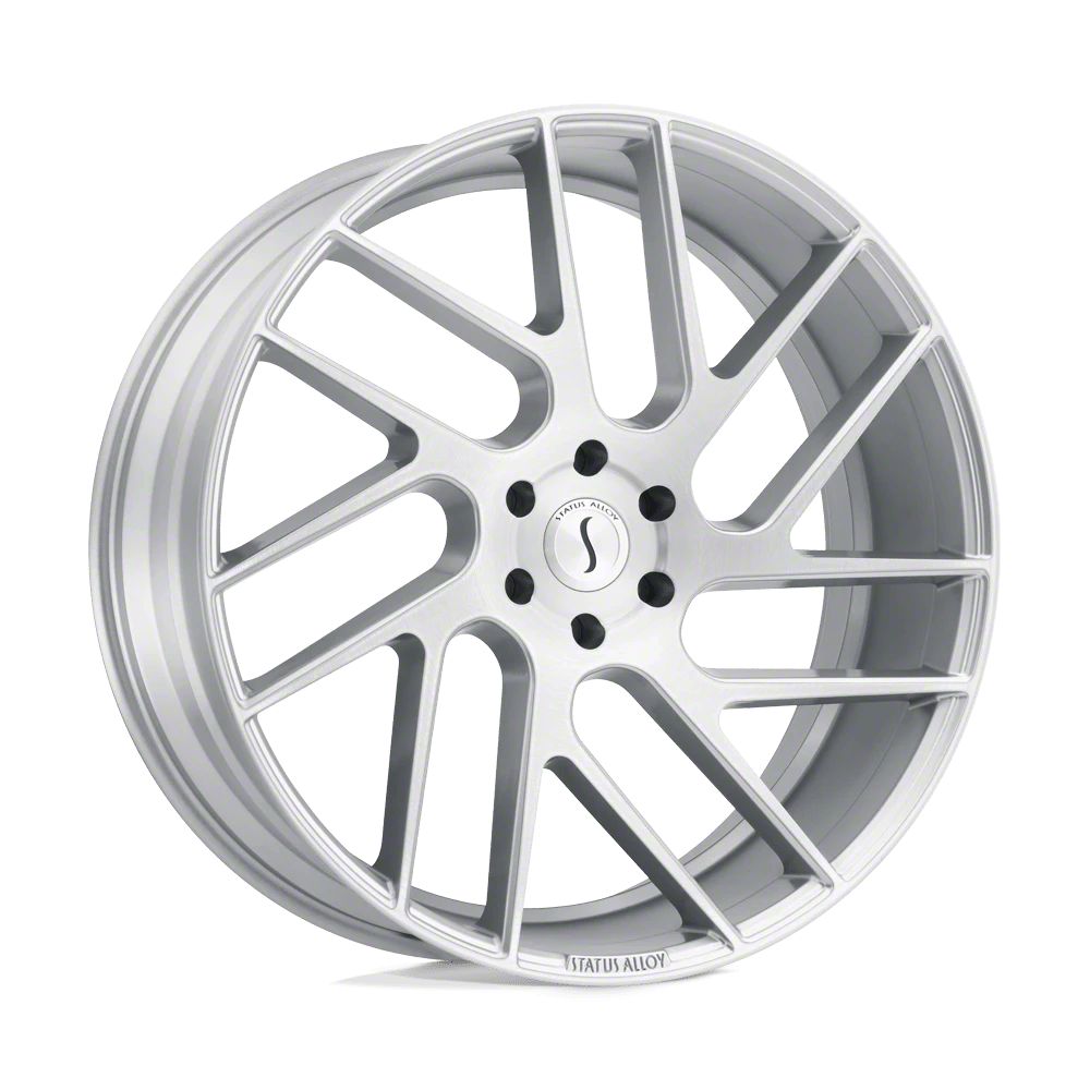 Status Juggernaut Silver with Brushed Machined Face 5-Lug Wheel; 20x9; 20mm Offset is a wheel that stands out with its refined design and precision finish, making it a perfect match for vehicles that demand a sophisticated yet aggressive appearance.