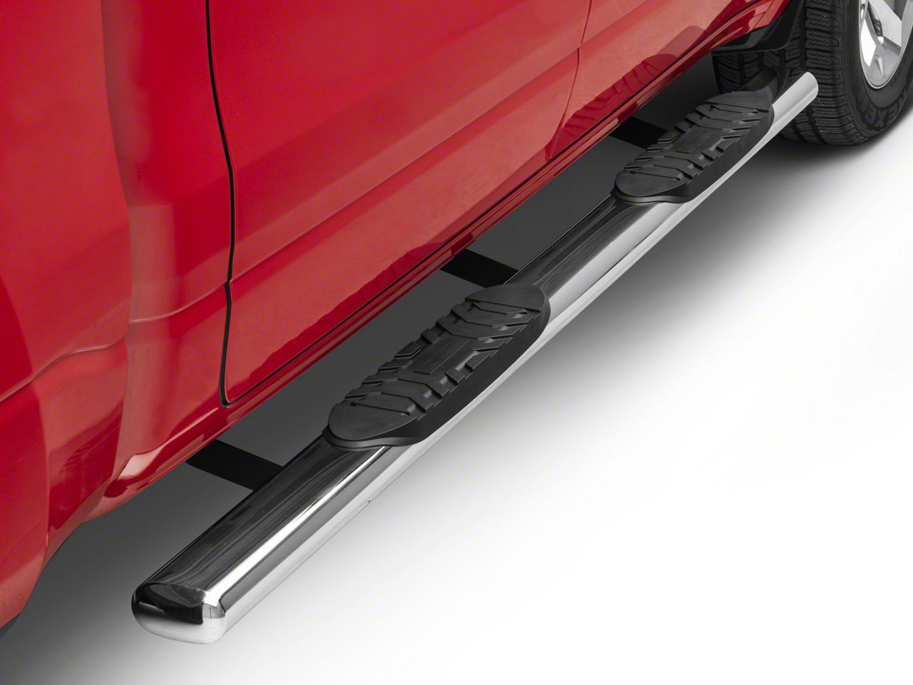 Quality Oval Side Step Bars. These Stainless Steel 5 Inch Oval Side Step Bars will transform the way you climb into your 2019-2026 Dodge RAM 1500 Crew Cab. The exemplified style and function starts with their polished stainless steel 5 inch, cab-length boards carrying high-traction polyethylene step pads and welded end caps for extra styling.