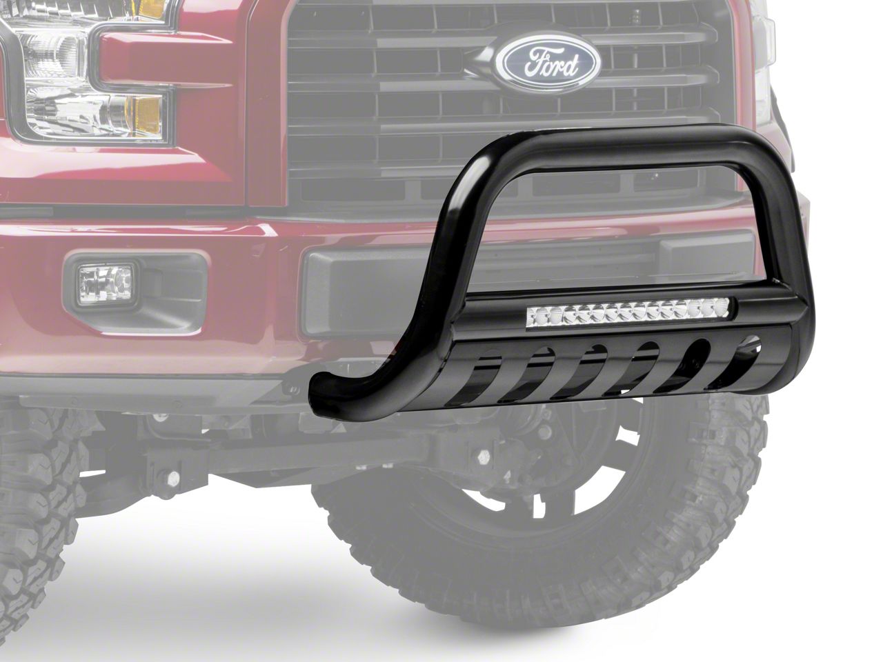 Front-end Protection and Lighting. Protect the front of your 2004-2026 F-150 and light up the trails during off-road adventures with this Bull Bar with 20-inch LED Light Bar. This bull bar with LED light bar is great for drivers who want an aggressive off-road accent that is functional. It protects the front bumper and grille of the truck while providing auxiliary LED lighting.